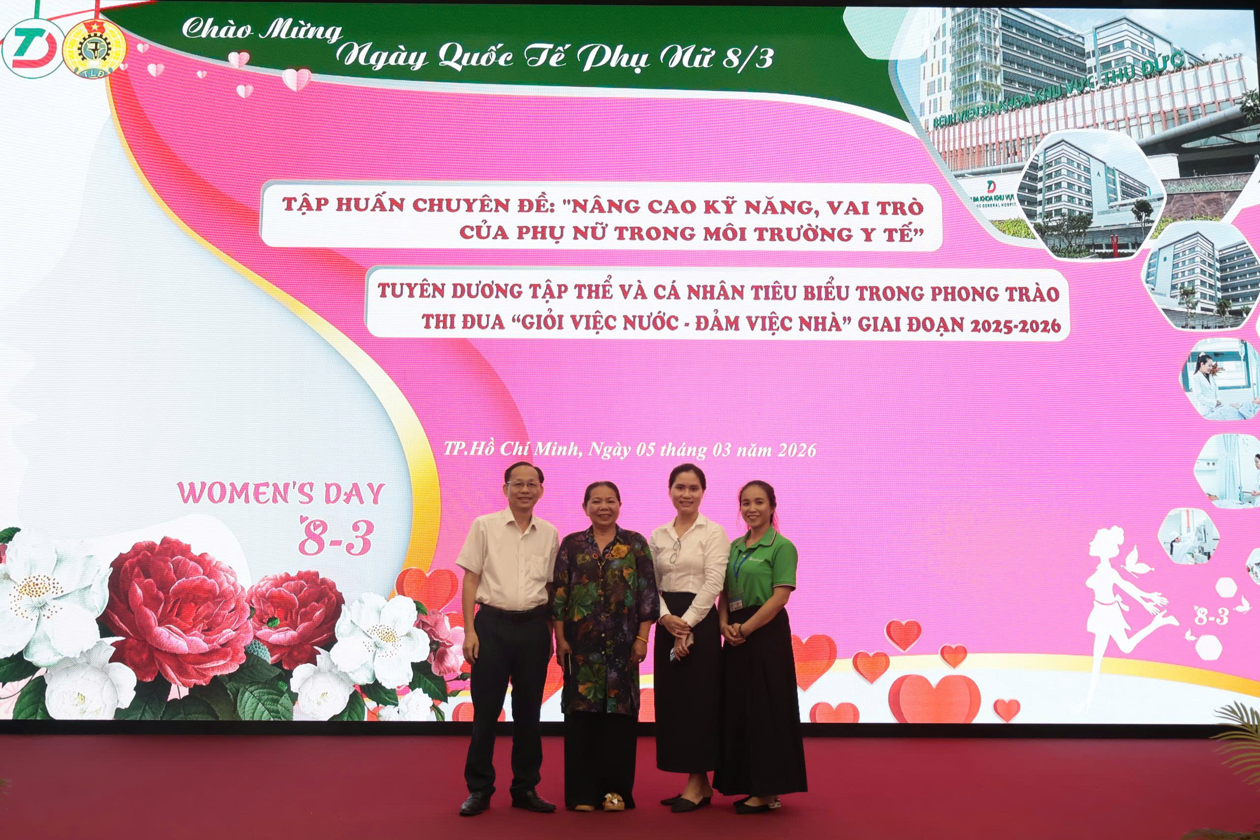 Nhân dịp kỷ niệm 116 năm Ngày Quốc tế Phụ nữ (08/3/1910 – 08/3/2026) và 1986 năm cuộc Khởi nghĩa Hai Bà Trưng, ngày 5/3/2026 Công đoàn Bệnh viện Đa khoa Khu vực Thủ Đức đã tổ chức chương trình gặp mặt, tuyên dương và tập huấn chuyên đề dành cho nữ cán bộ, viên chức, người lao động trong toàn bệnh viện. Đây là hoạt động ý nghĩa nhằm tôn vinh những đóng góp quan trọng của phụ nữ, đồng thời khích lệ tinh thần thi đua trong đội ngũ nữ nhân viên y tế.