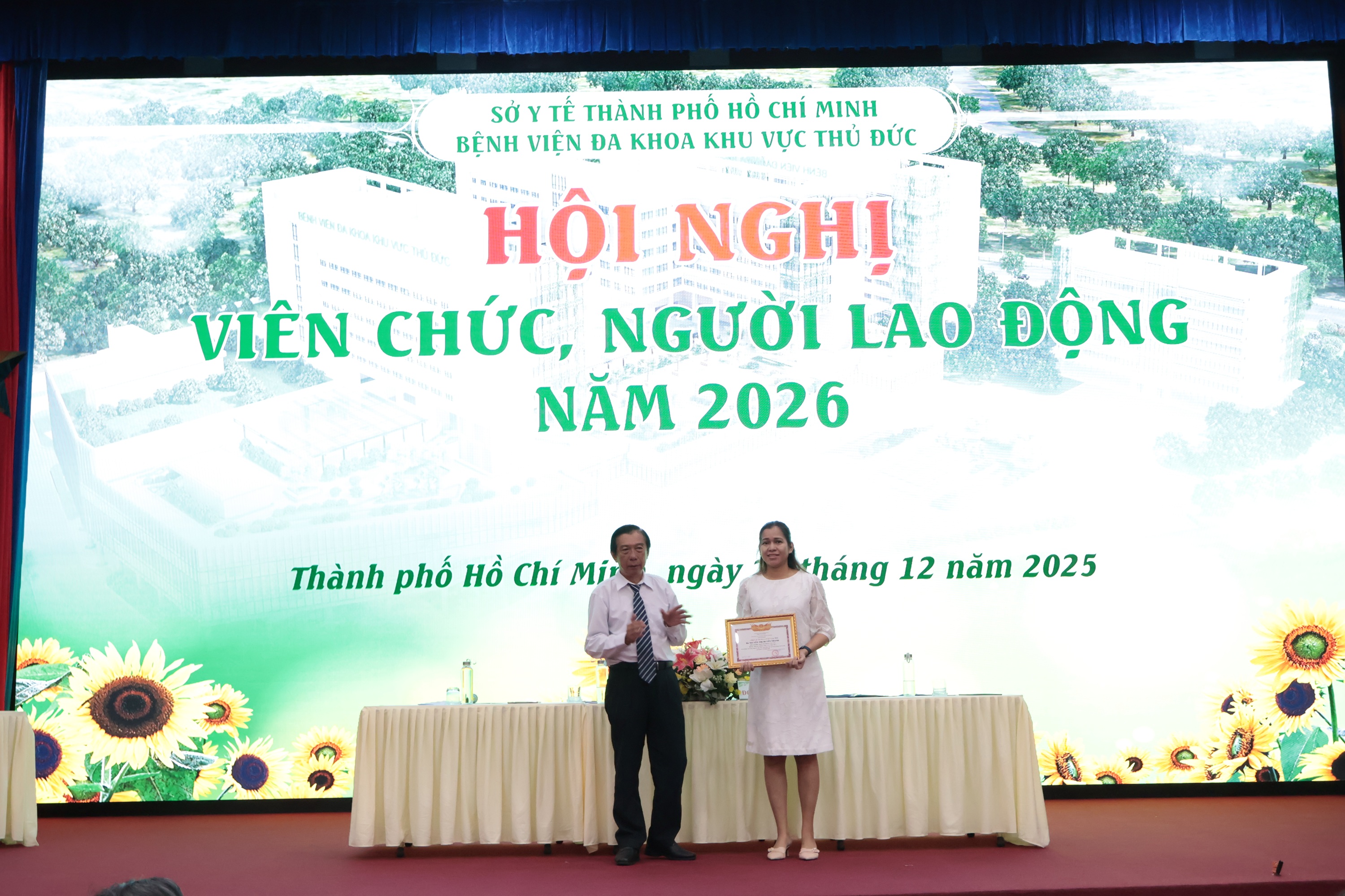 Sáng ngày 25/12/2025, Bệnh viện Đa khoa khu vực Thủ Đức đã long trọng tổ chức Hội nghị viên chức, người lao động năm 2026. Tham dự Hội nghị có bà Hoàng Thị Kim Hương – Phó Chủ tịch Công đoàn phường Linh Xuân; về phía Bệnh viện có Đảng ủy, Ban Giám đốc, Ban Chấp hành Công đoàn, Trưởng ban Nữ công, Ban Thanh tra nhân dân, Đoàn Thanh niên và các đại biểu được bầu từ các khoa, phòng trong toàn Bệnh viện.
