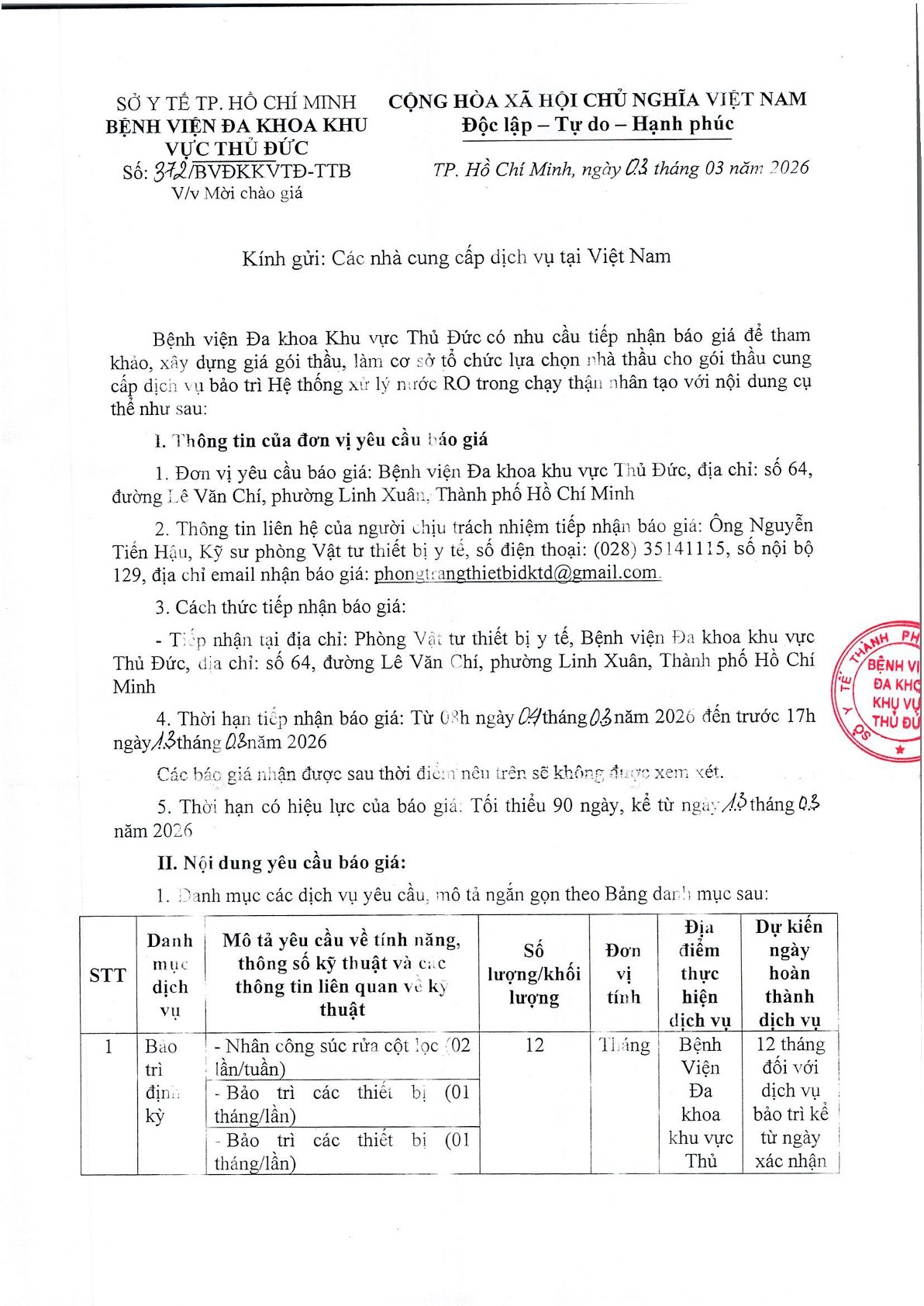 Phòng Trang Thiết Bị - Vật Tư Y Tế _ Thông báo Chào Giá _ CV372 Bởi supadmin -03-03-2026 ... +++ Link các danh sách đính kèm: - Thư mời yêu cầu báo giá và phụ lục - Mẫu phụ lục báo giá