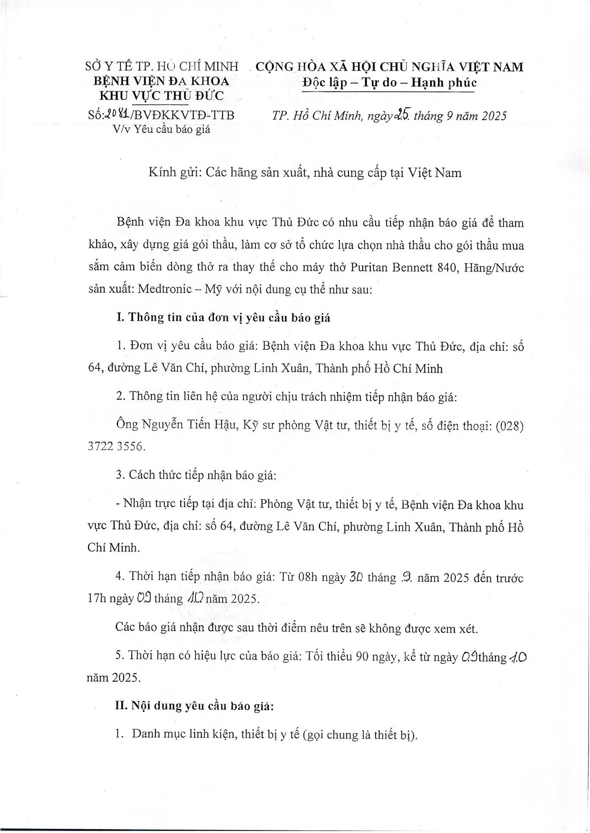 Thư Mời Báo Giá "V/v Yêu cầu báo giá" - Kính gửi: Các hãng sản xuất, nhà cung cấp tại Việt Nam Bởi supadmin -29-09-2025 ... +++ Link các danh sách đính kèm: - Thư mời yêu cầu báo giá và phụ lục - Mẫu phụ lục báo giá