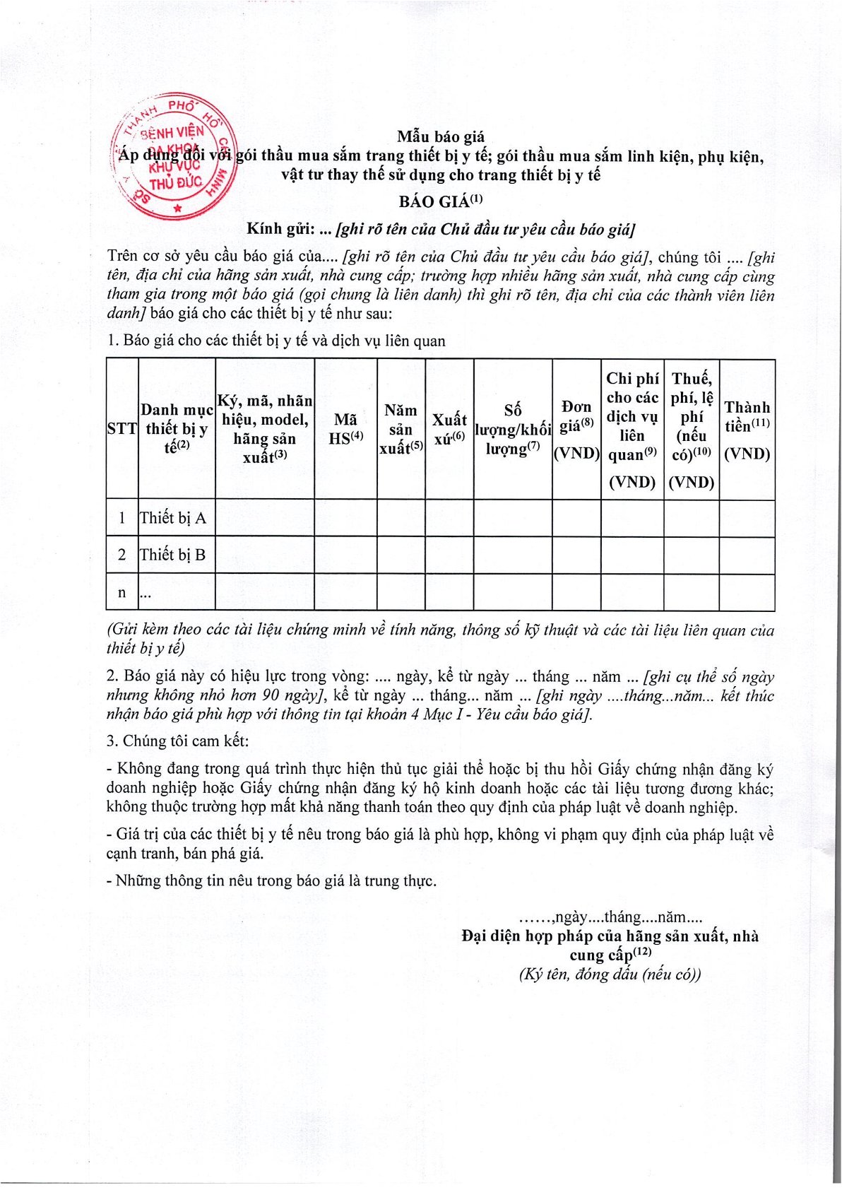Thư Mời Báo Giá "V/v Yêu cầu báo giá" - Kính gửi: Các hãng sản xuất, nhà cung cấp tại Việt Nam
