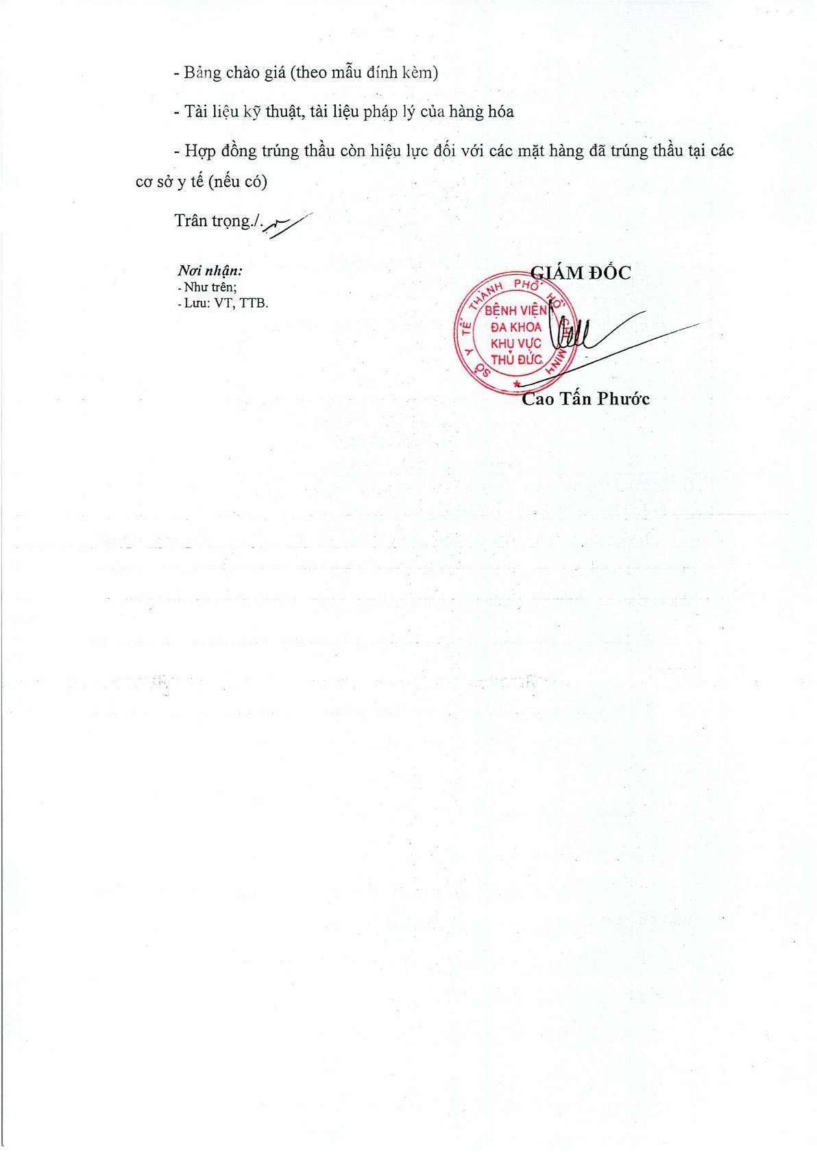 Thư Mời Chào Giá "V/v Yêu cầu báo giá"