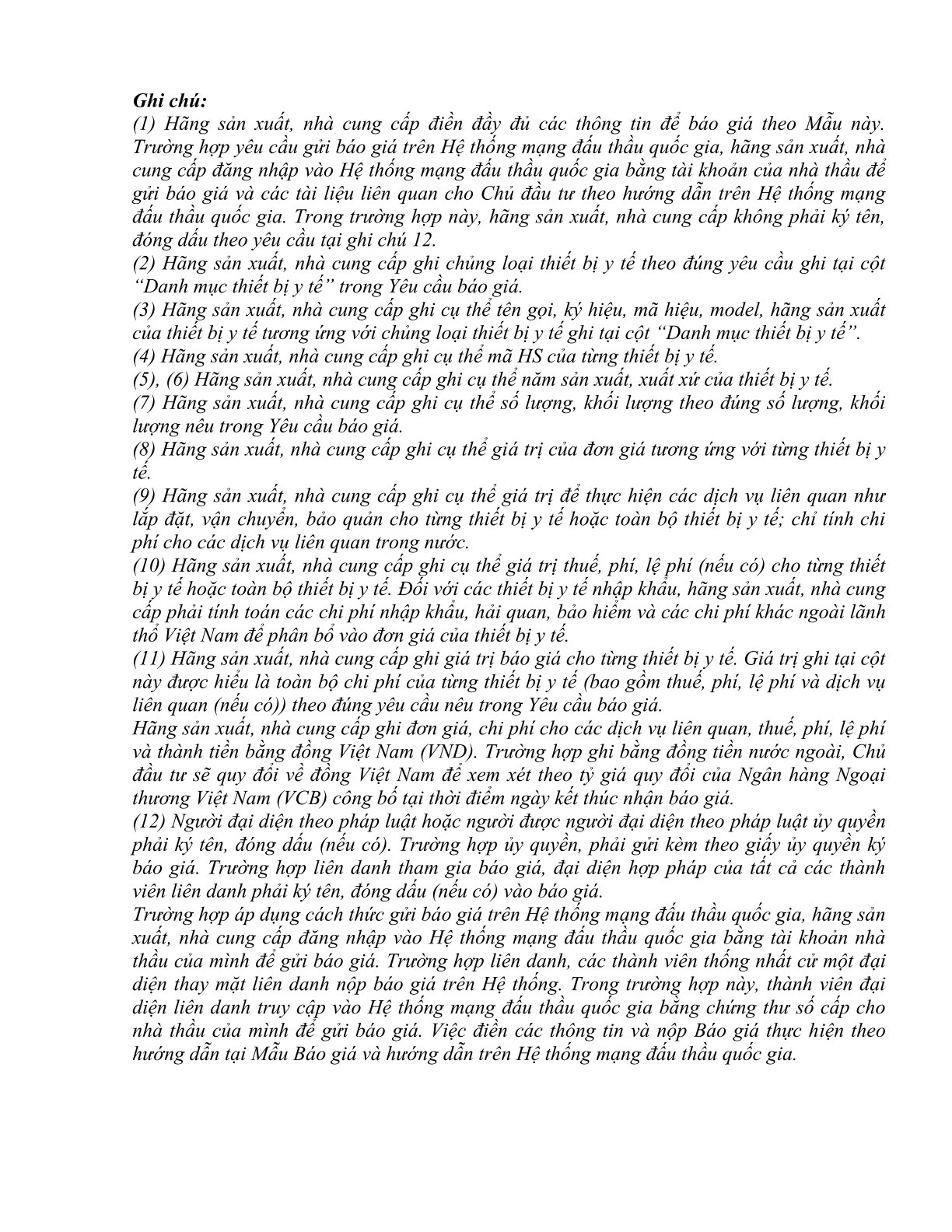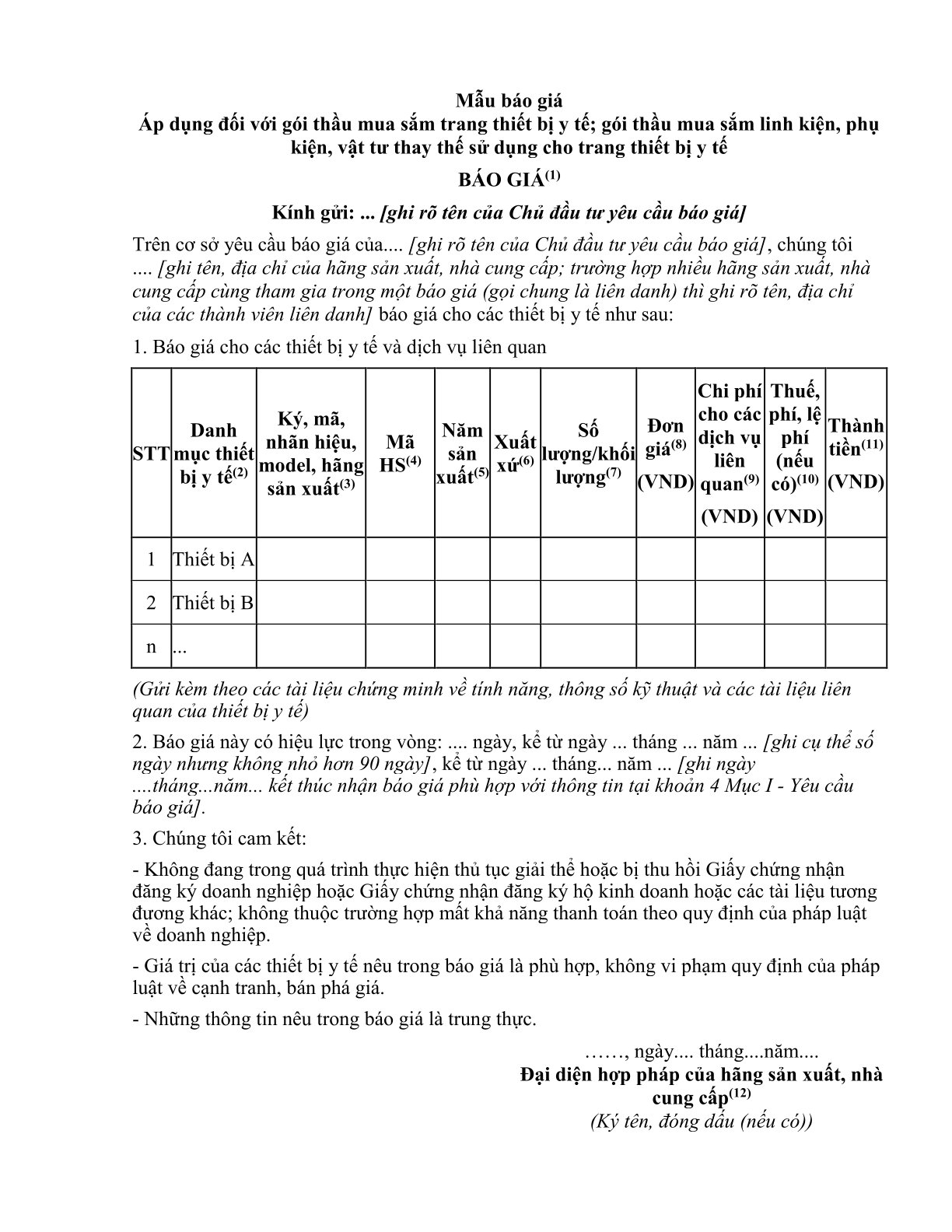 Thư Mời Báo Giá "V/v Yêu cầu báo giá" - Kính gửi: Các hãng sản xuất, nhà cung cấp tại Việt Nam Bởi supadmin -10-12-2025 ... +++ Link các danh sách đính kèm: - Thư mời yêu cầu báo giá và phụ lục - Mẫu phụ lục báo giá