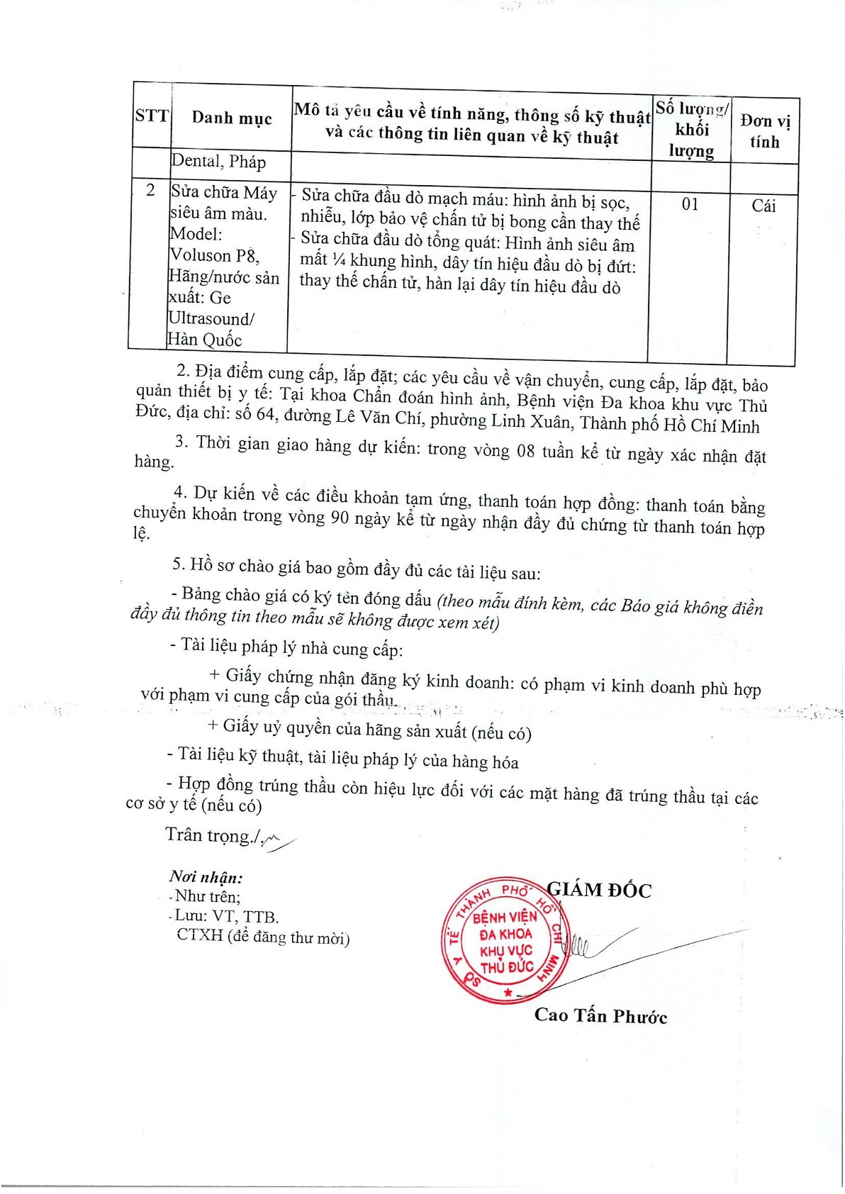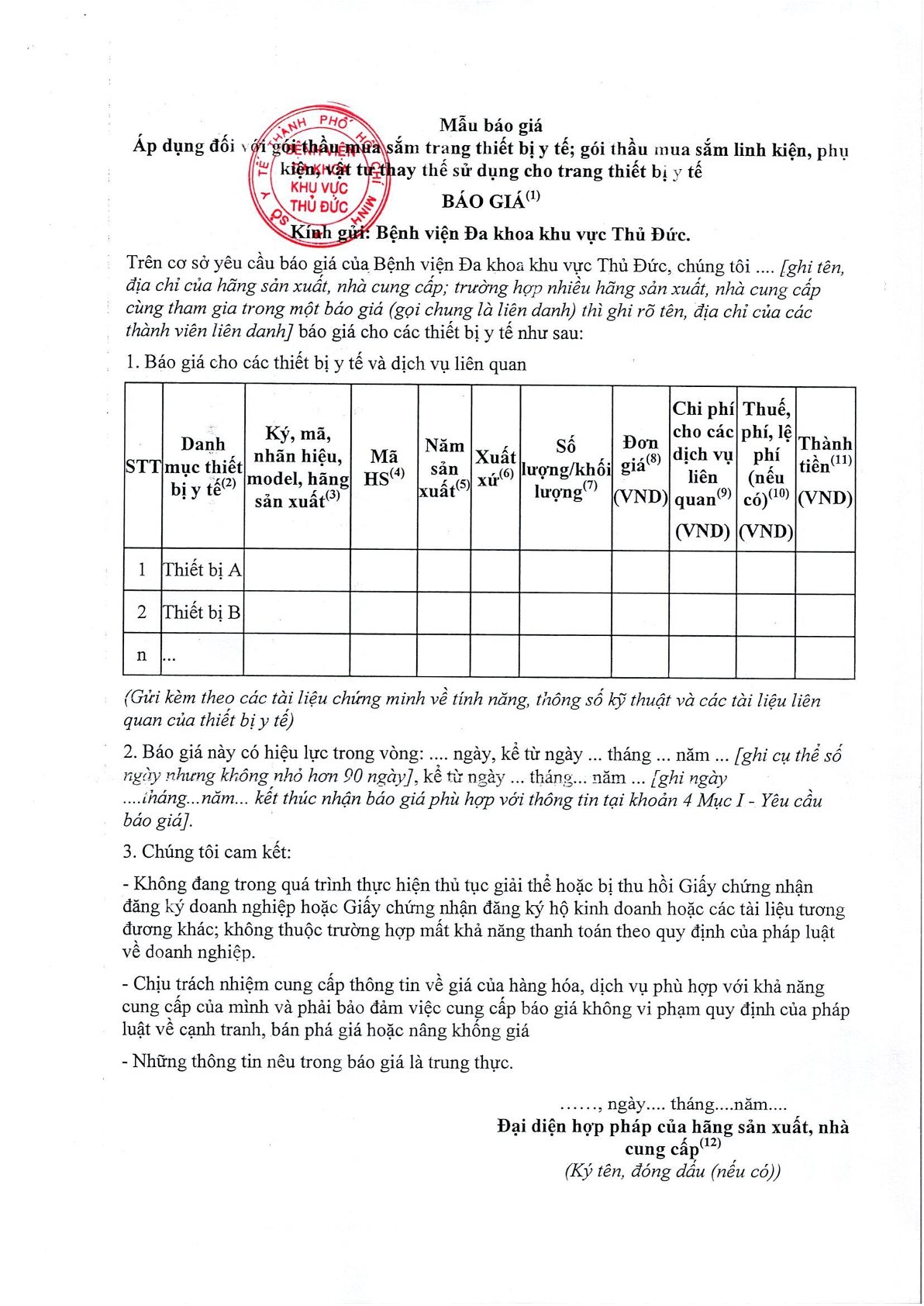 Thư Mời Báo Giá " V/v Yêu cầu báo giá " - Kính gửi: Các hãng sản xuất, nhà cung cấp tại Việt Nam Bởi supadmin -12-12-2025 ... +++ Link các danh sách đính kèm: - Thư mời yêu cầu báo giá và phụ lục - Mẫu phụ lục báo giá