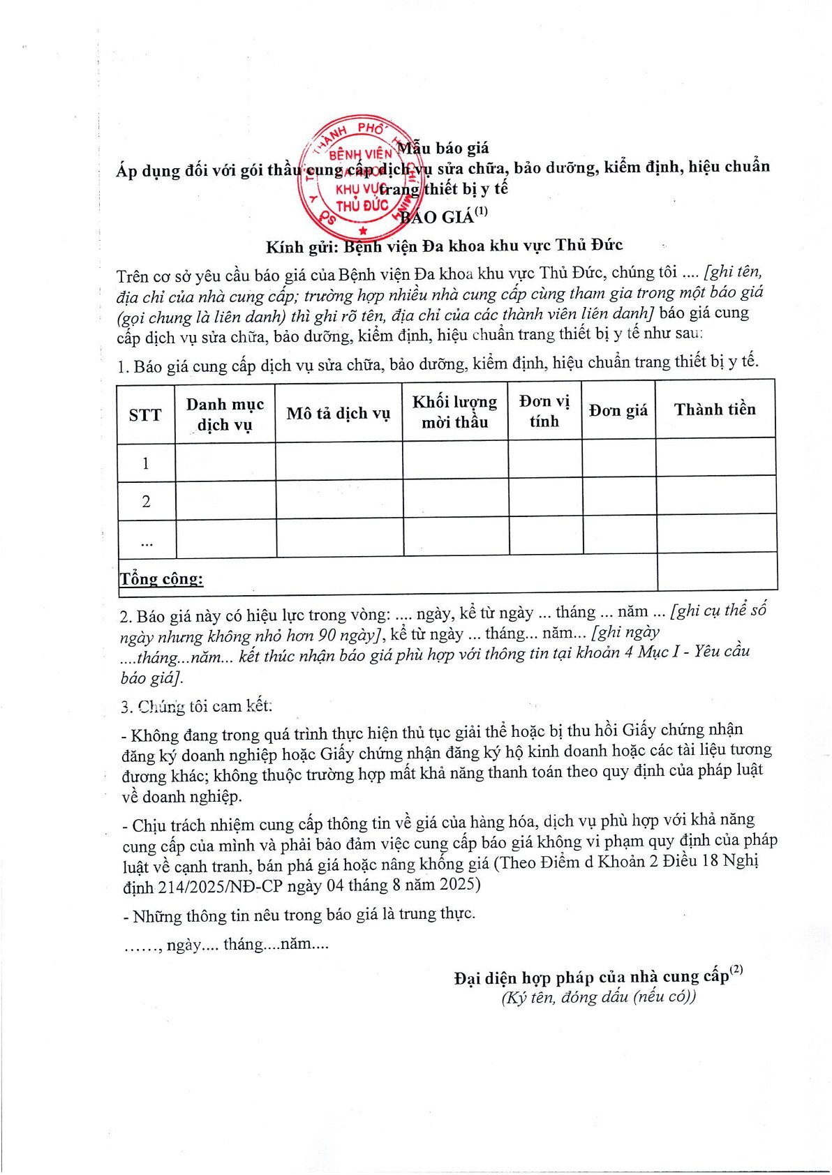 Thư Mời Chào Giá "V/v Yêu cầu báo giá"