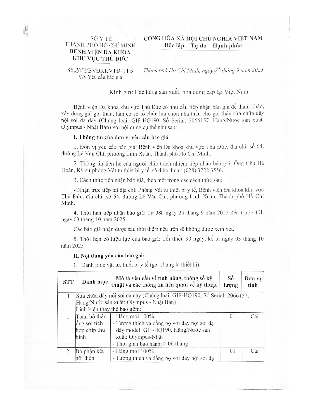 Thư Mời Chào Giá "V/v Yêu cầu báo giá" Bởi supadmin -24-09-2025 +++ Link các danh sách đính kèm: - Thư mời yêu cầu báo giá và phụ lục - Mẫu phụ lục báo giá