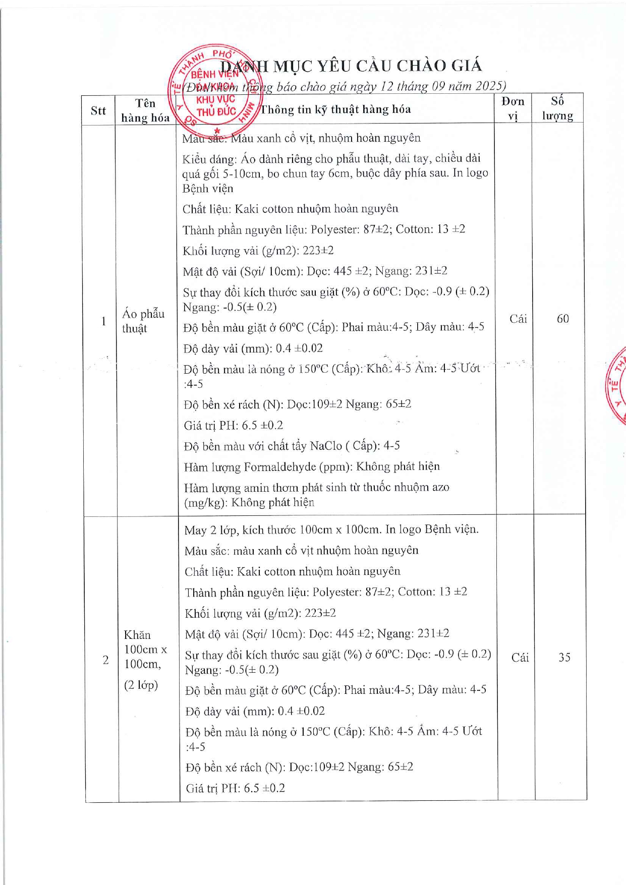 Thư Mời Báo Giá "V/v Yêu cầu báo giá" - Kính gửi: Các công ty, đơn vị thực hiện các xét nghiệm dịch vụ