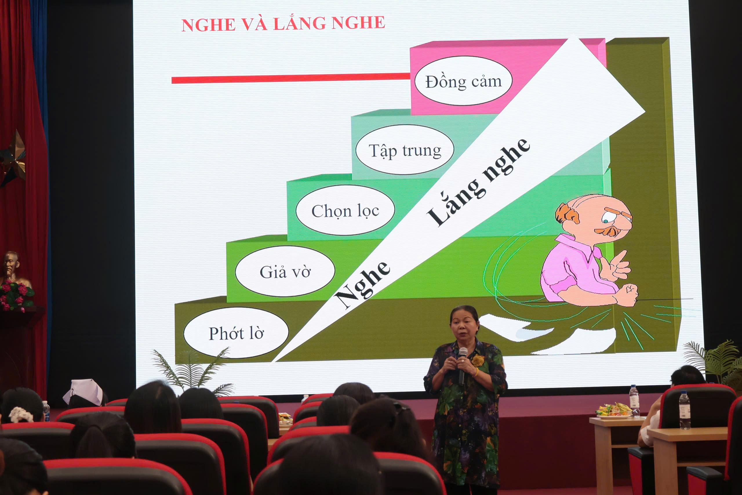 Trong khuôn khổ chương trình, các đại biểu và viên chức, người lao động đã tham dự chuyên đề “Nâng cao kỹ năng, vai trò của phụ nữ trong môi trường y tế” do Thạc sĩ Đinh Thị Thu Trang trình bày. Với nhiều năm kinh nghiệm trong công tác nữ công và hoạt động công đoàn, báo cáo viên đã mang đến những chia sẻ thiết thực, giúp nâng cao nhận thức về vai trò của phụ nữ trong môi trường làm việc hiện đại, đồng thời gợi mở các kỹ năng cần thiết để cân bằng giữa công việc chuyên môn, phát triển bản thân và xây dựng gia đình hạnh phúc.