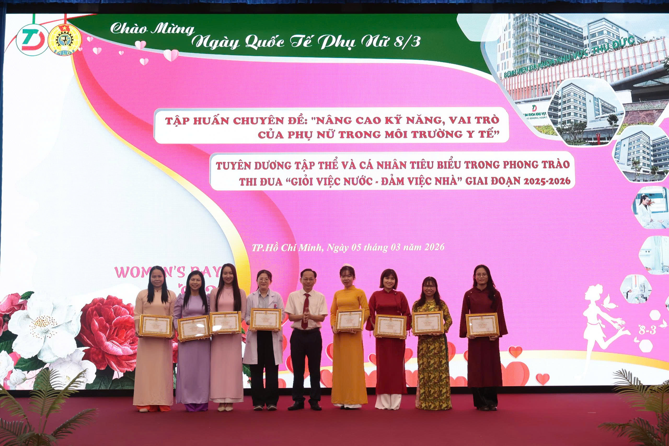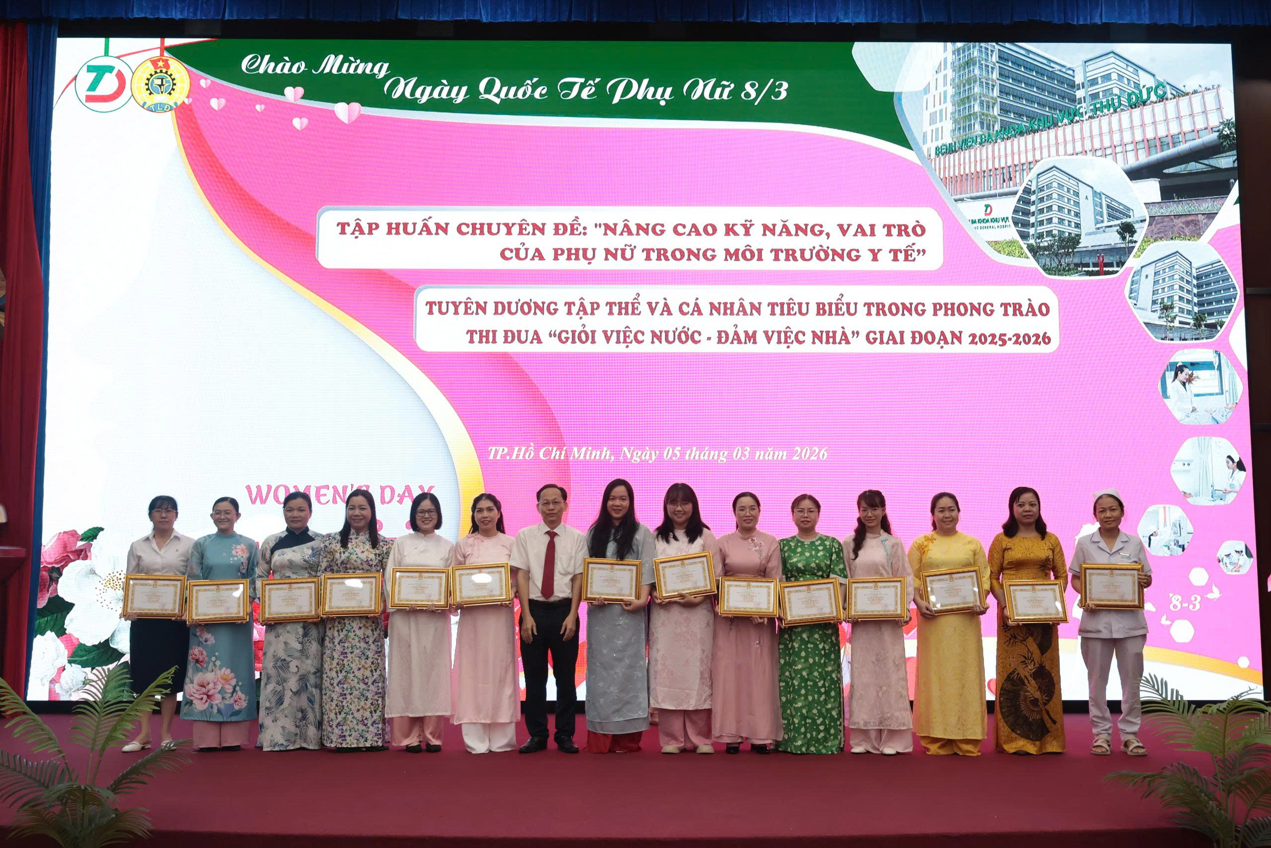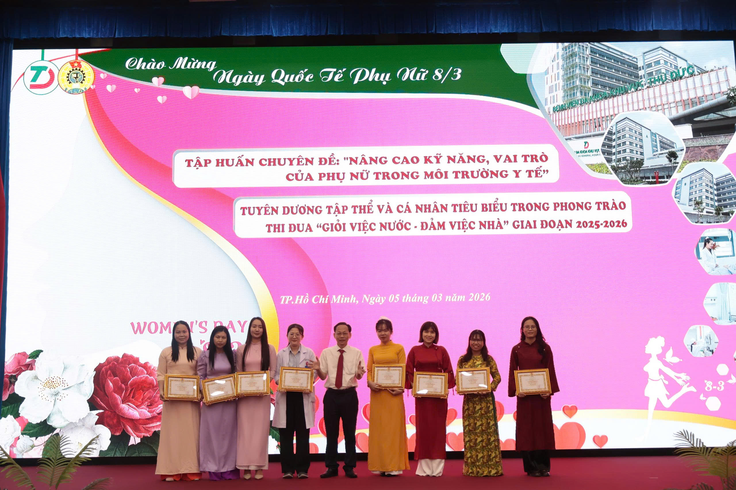 Nhân dịp kỷ niệm 116 năm Ngày Quốc tế Phụ nữ (08/3/1910 – 08/3/2026) và 1986 năm cuộc Khởi nghĩa Hai Bà Trưng, ngày 5/3/2026 Công đoàn Bệnh viện Đa khoa Khu vực Thủ Đức đã tổ chức chương trình gặp mặt, tuyên dương và tập huấn chuyên đề dành cho nữ cán bộ, viên chức, người lao động trong toàn bệnh viện. Đây là hoạt động ý nghĩa nhằm tôn vinh những đóng góp quan trọng của phụ nữ, đồng thời khích lệ tinh thần thi đua trong đội ngũ nữ nhân viên y tế.