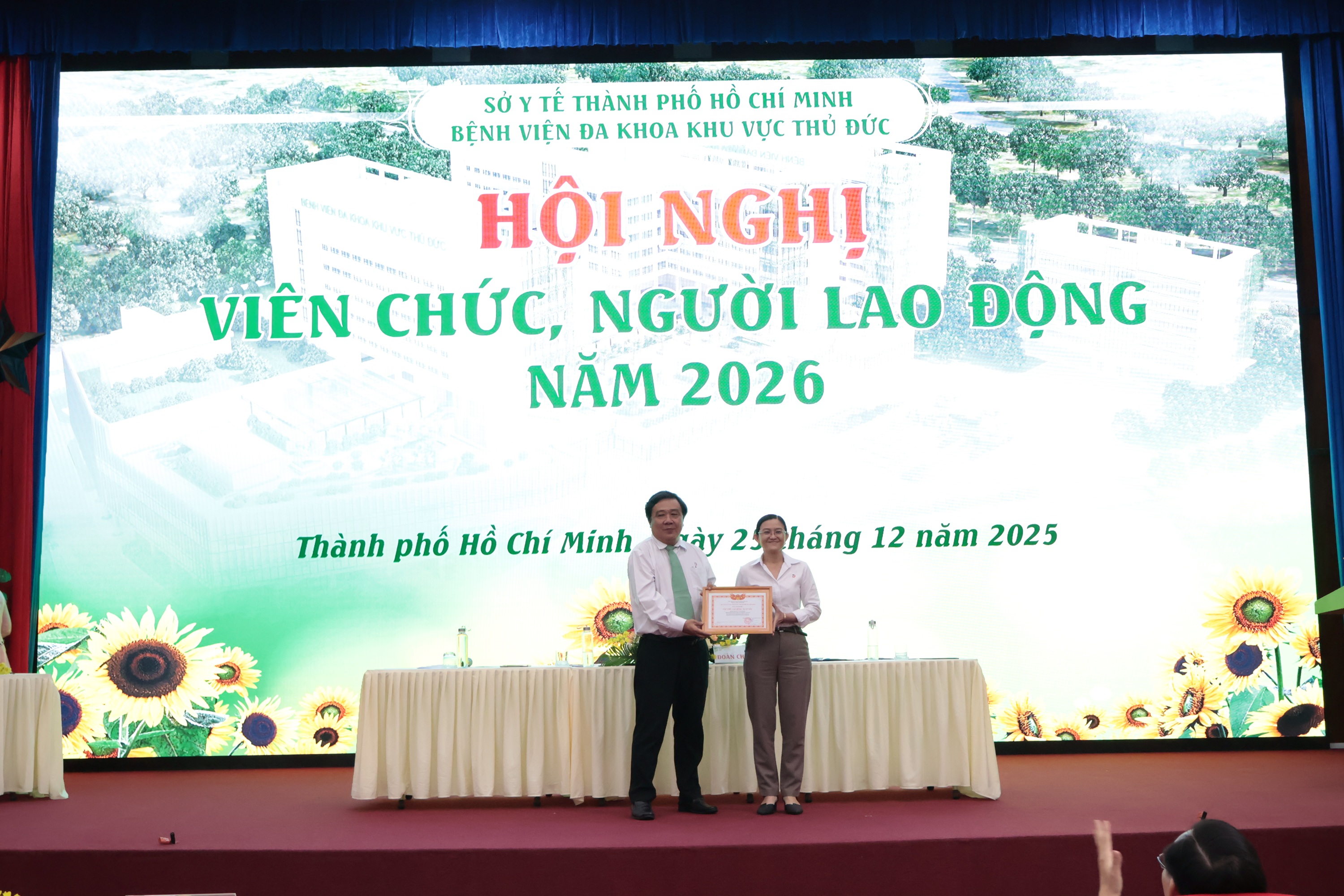 Sáng ngày 25/12/2025, Bệnh viện Đa khoa khu vực Thủ Đức đã long trọng tổ chức Hội nghị viên chức, người lao động năm 2026. Tham dự Hội nghị có bà Hoàng Thị Kim Hương – Phó Chủ tịch Công đoàn phường Linh Xuân; về phía Bệnh viện có Đảng ủy, Ban Giám đốc, Ban Chấp hành Công đoàn, Trưởng ban Nữ công, Ban Thanh tra nhân dân, Đoàn Thanh niên và các đại biểu được bầu từ các khoa, phòng trong toàn Bệnh viện.