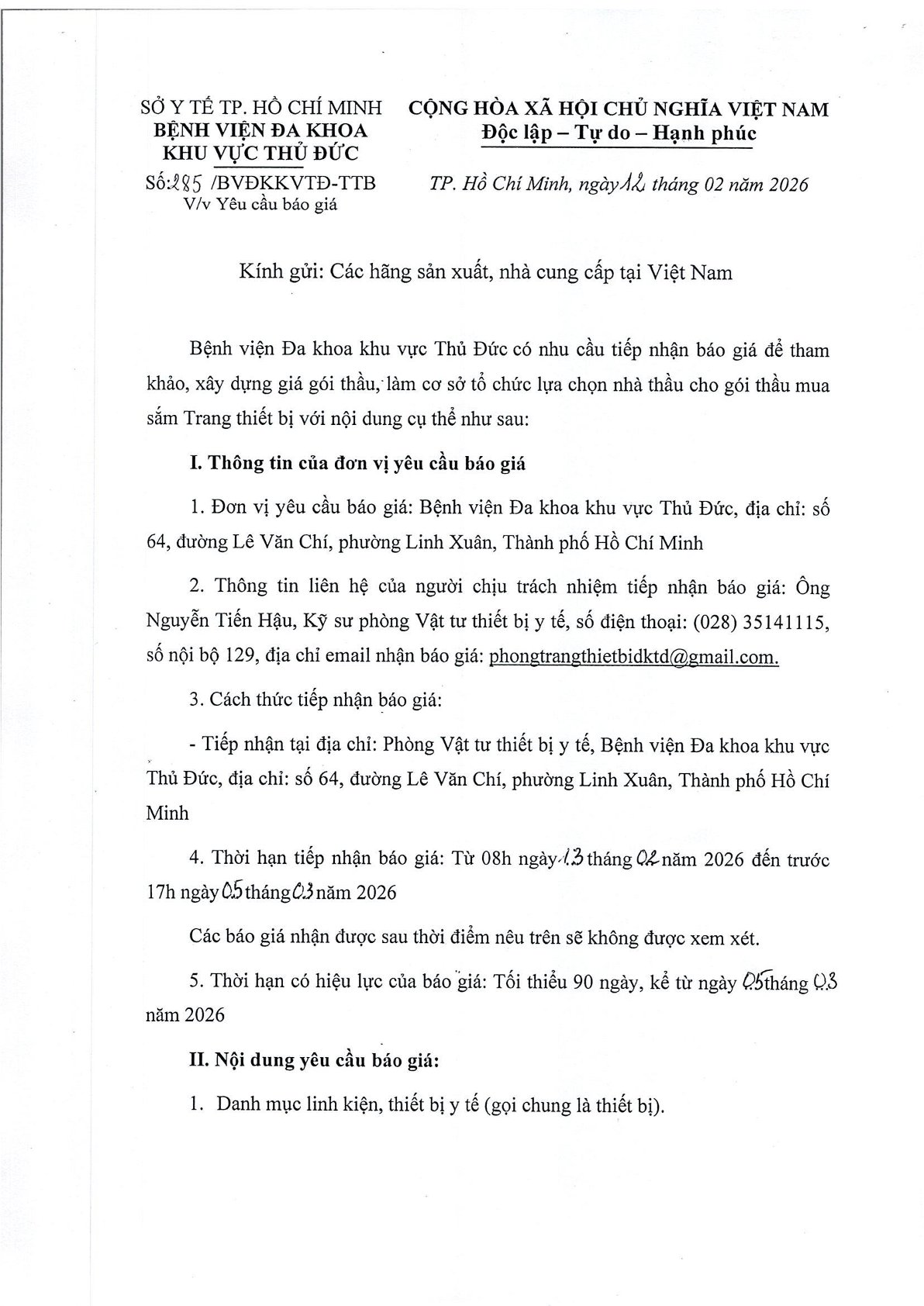 Phòng Trang Thiết Bị - Vật Tư Y Tế _ Thông báo Chào Giá _ CV285 Bởi supadmin -12-02-2026 ... +++ Link các danh sách đính kèm: - Thư mời yêu cầu báo giá và phụ lục - Mẫu phụ lục báo giá