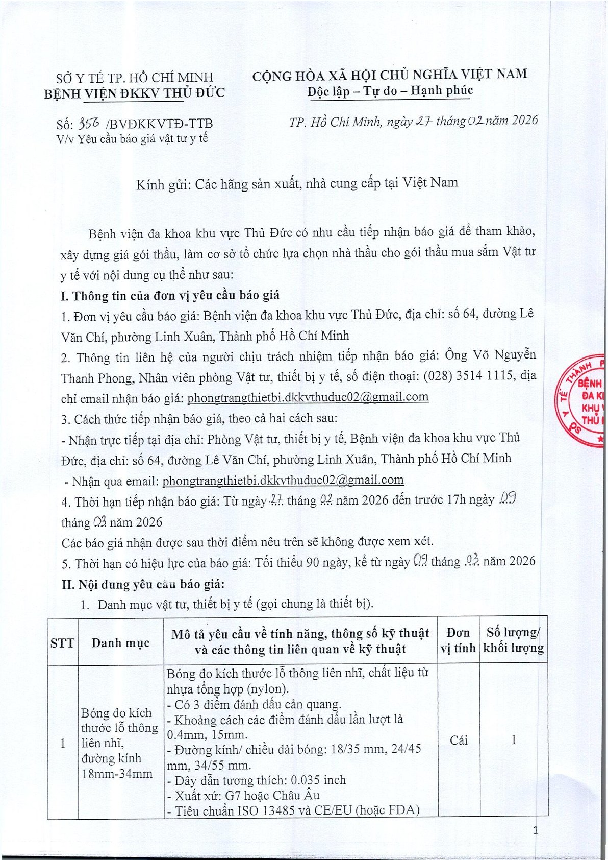 Phòng Trang Thiết Bị - Vật Tư Y Tế _ Thông báo Chào Giá _ CV356 Bởi supadmin -27-02-2026 ... +++ Link các danh sách đính kèm: - Thư mời yêu cầu báo giá và phụ lục - Mẫu phụ lục báo giá