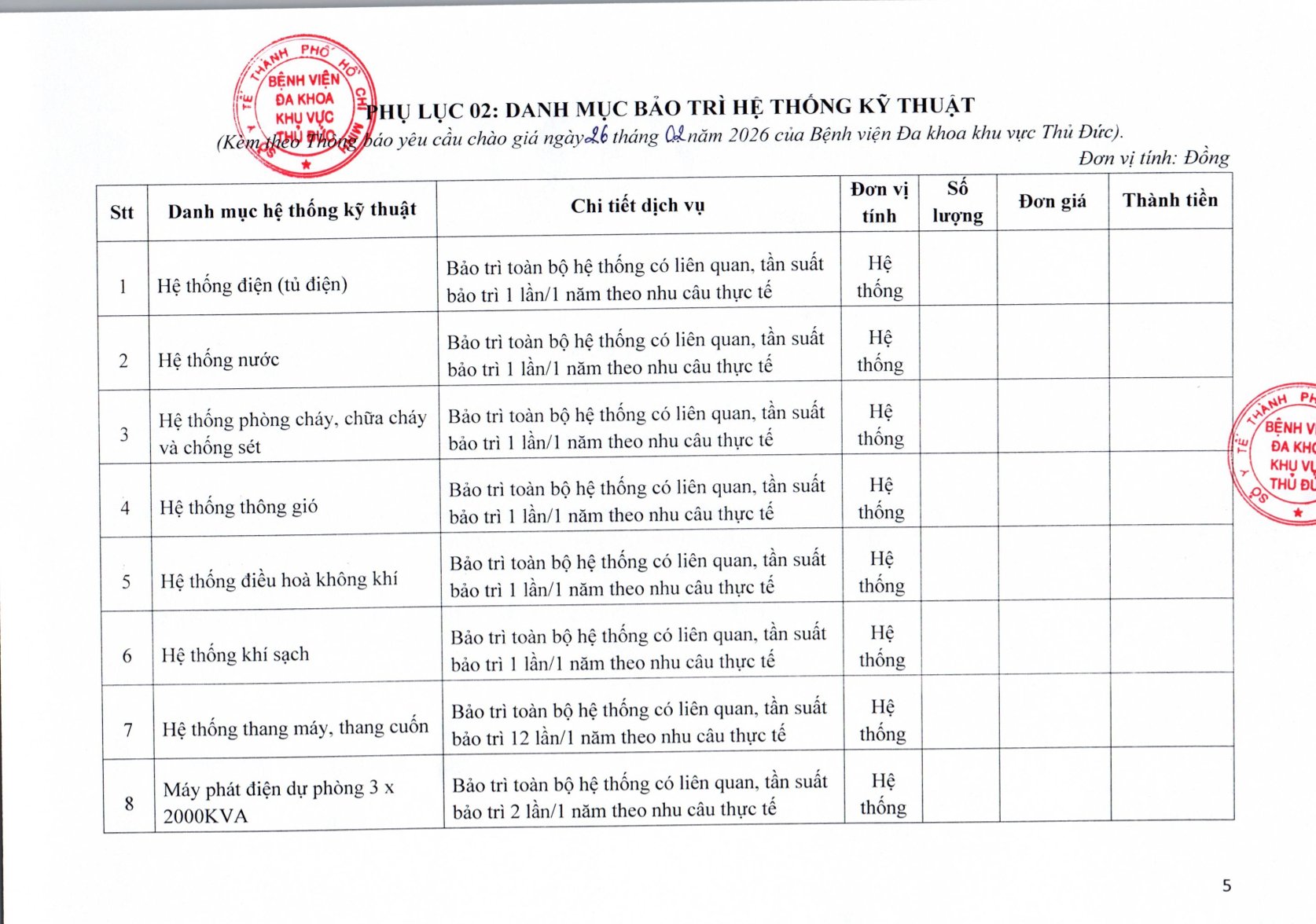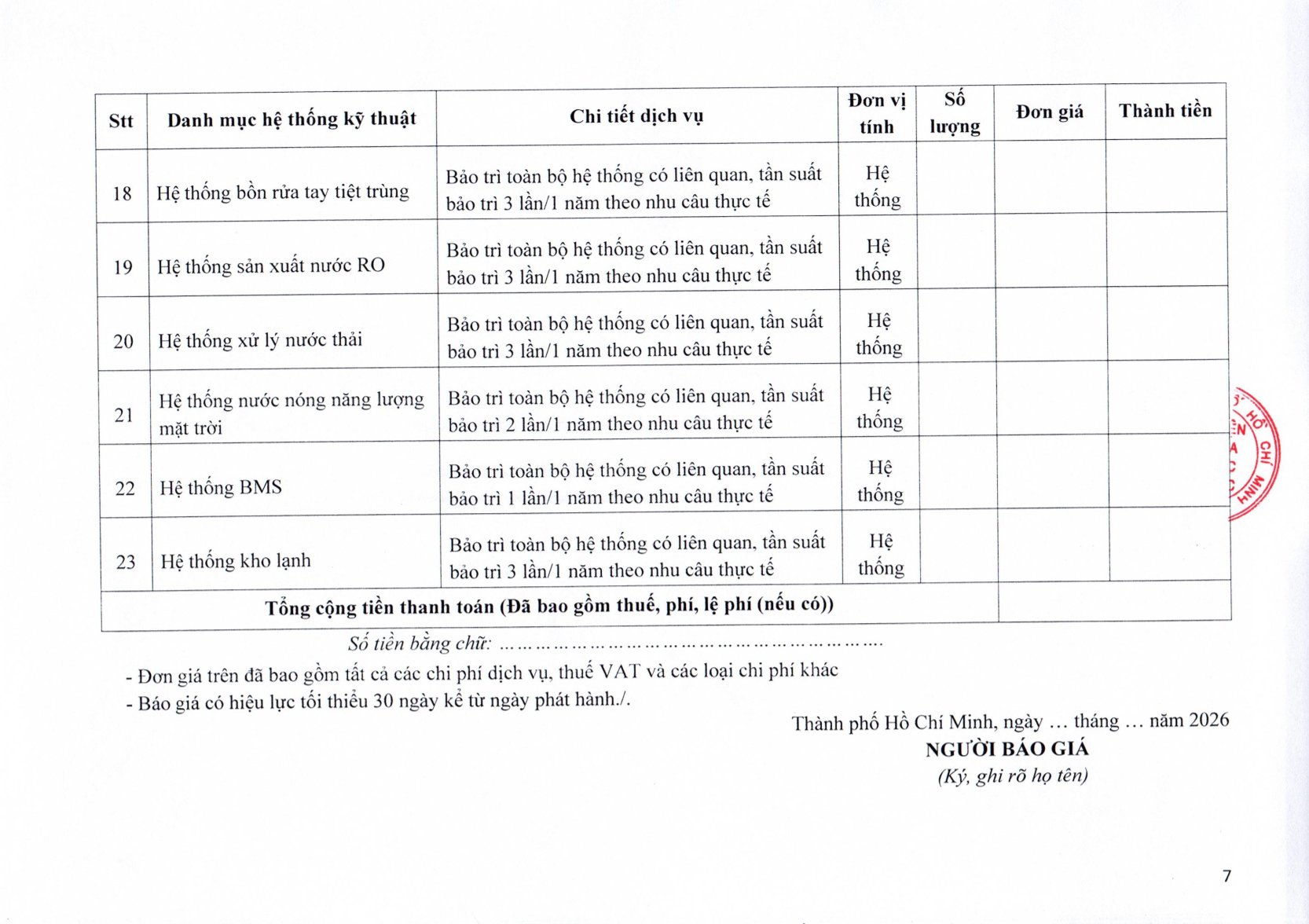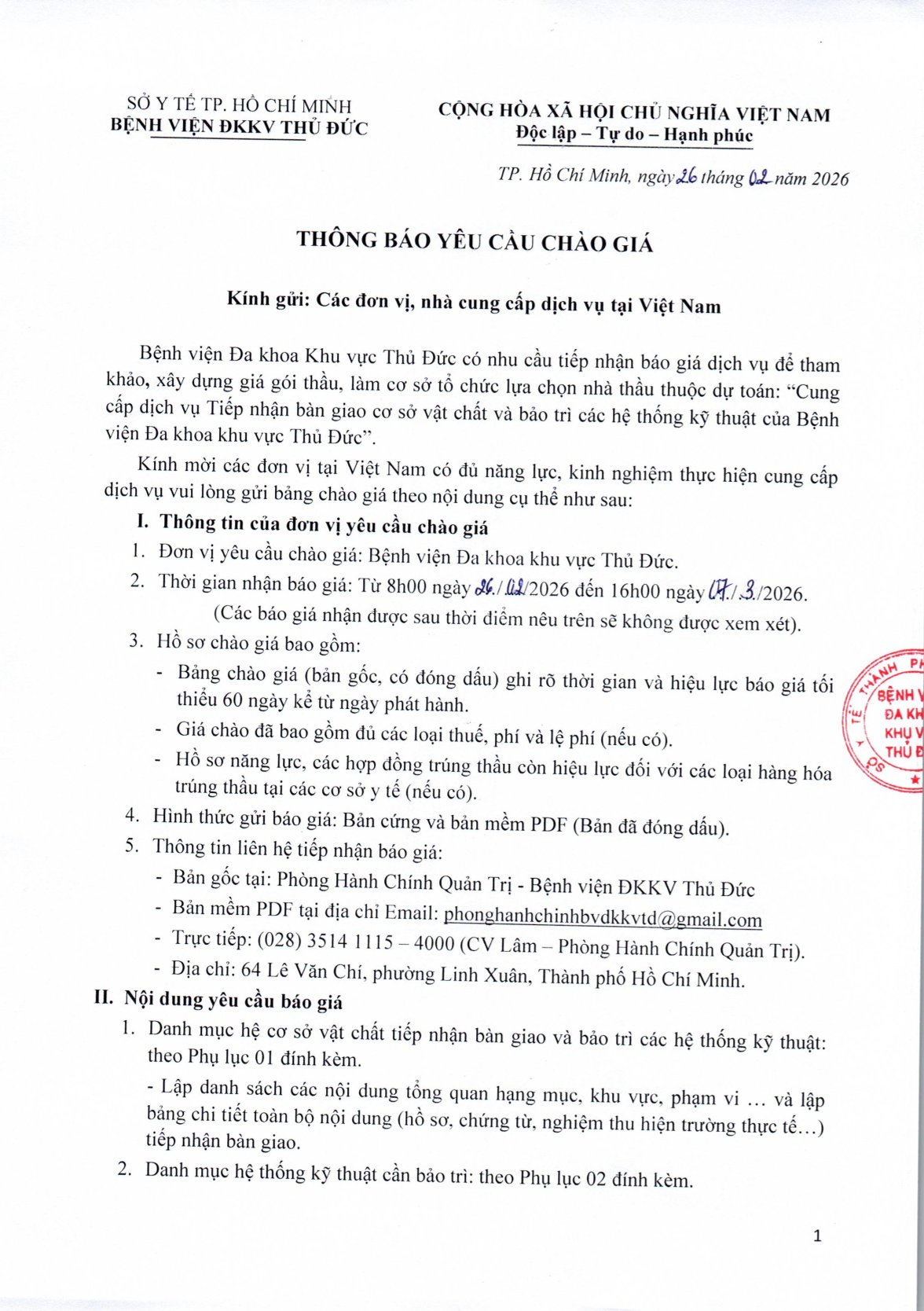 THÔNG BÁO YÊU CẦU CHÀO GIÁ - KÍNH GỬI: CÁC ĐƠN VỊ, NHÀ CUNG CẤP DỊCH VỤ TẠI VIỆT NAM Bởi supadmin -26-02-2026 ...