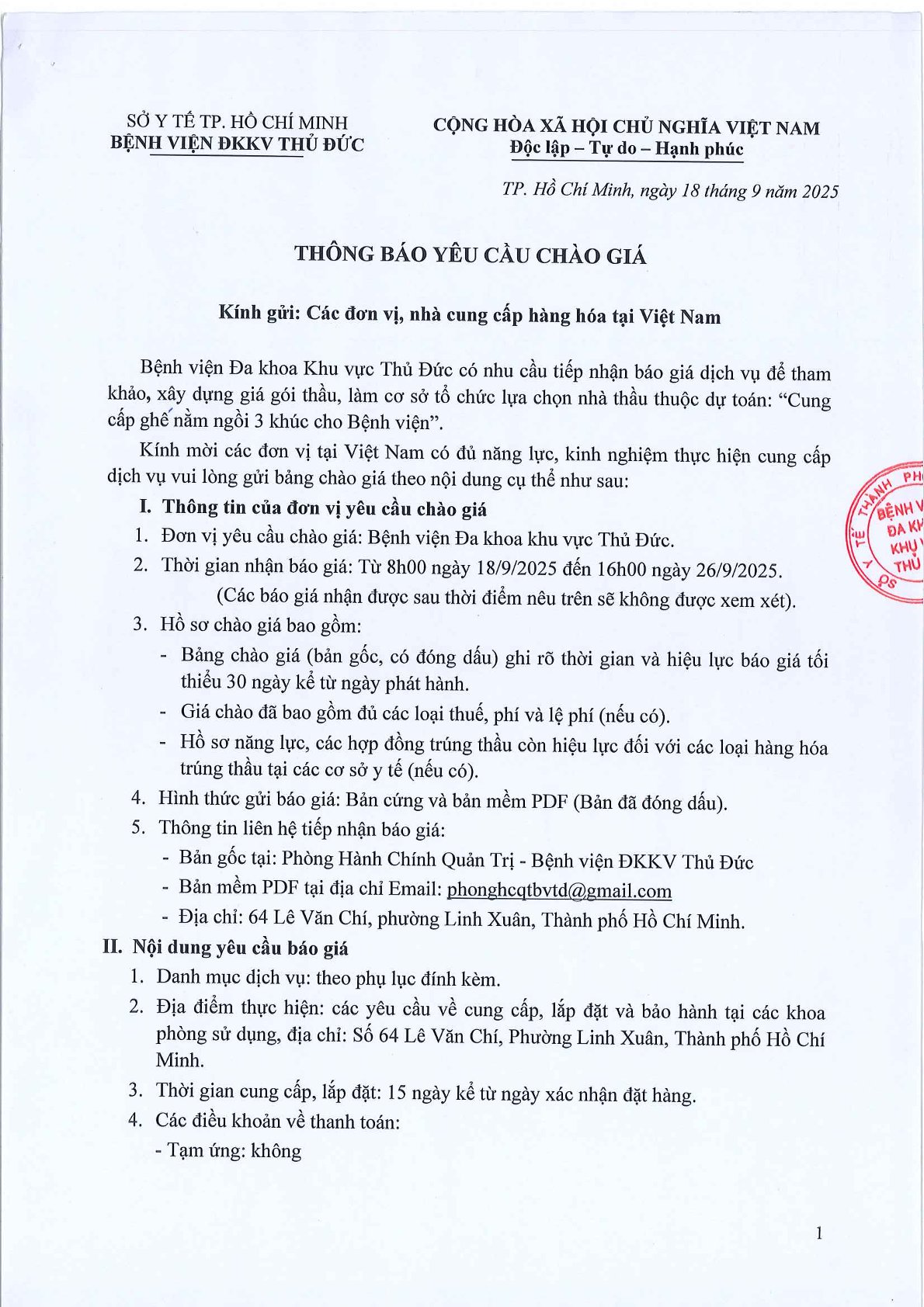 Thông Báo Yêu Cầu Chào Giá - Kính gửi: Các đơn vị, nhà cung cấp tại Việt Nam Bởi supadmin -18-09-2025 ...