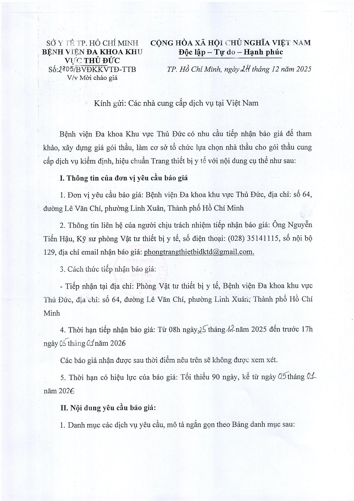 Thư Mời Báo Giá " V/v Mời chào giá " - Kính gửi: Các nhà cung cấp dịch vụ tại Việt Nam Bởi supadmin -24-12-2025 ... +++ Link các danh sách đính kèm: - Thư mời yêu cầu chào giá và phụ lục - Mẫu phụ lục chào giá