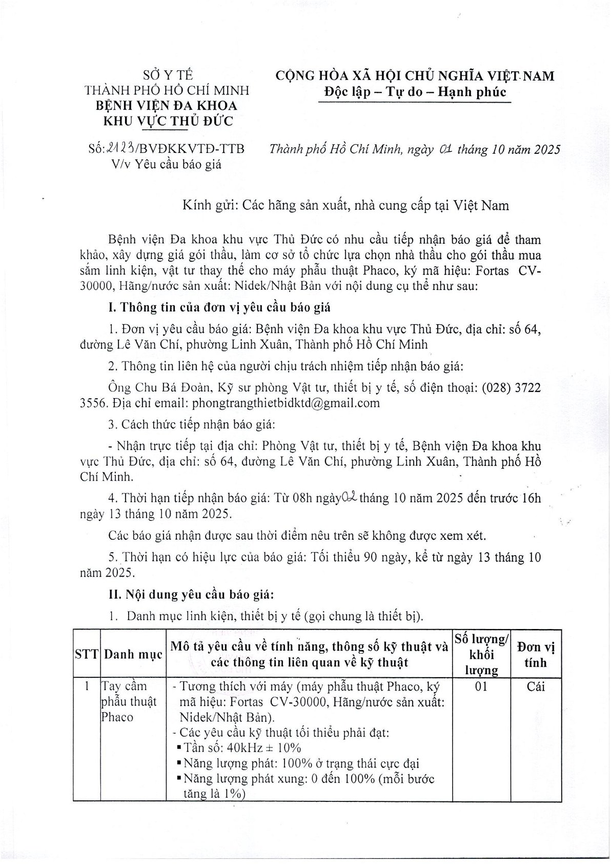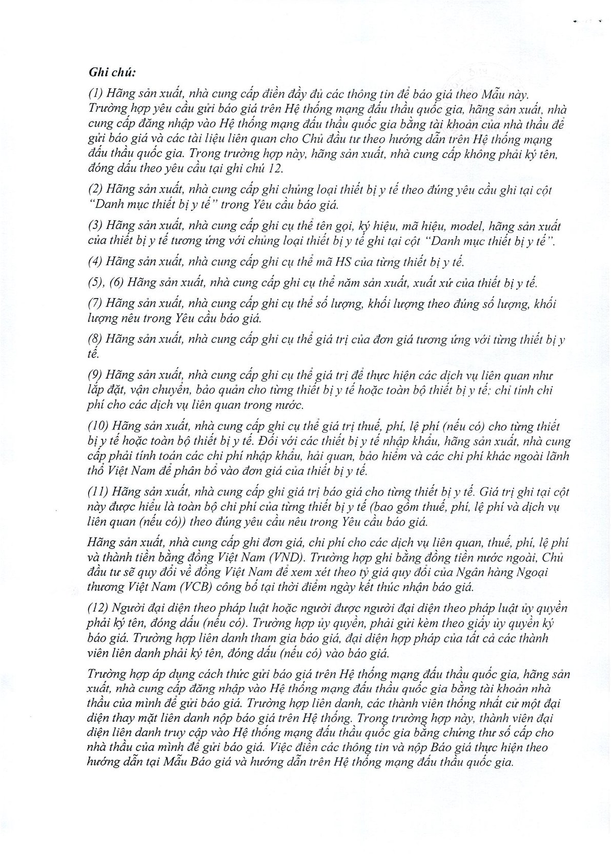 Thư Mời Báo Giá "V/v Yêu cầu báo giá" - Kính gửi: Các hãng sản xuất, nhà cung cấp tại Việt Nam Bởi supadmin -01-10-2025 ... +++ Link các danh sách đính kèm: - Thư mời yêu cầu báo giá và phụ lục - Mẫu phụ lục báo giá