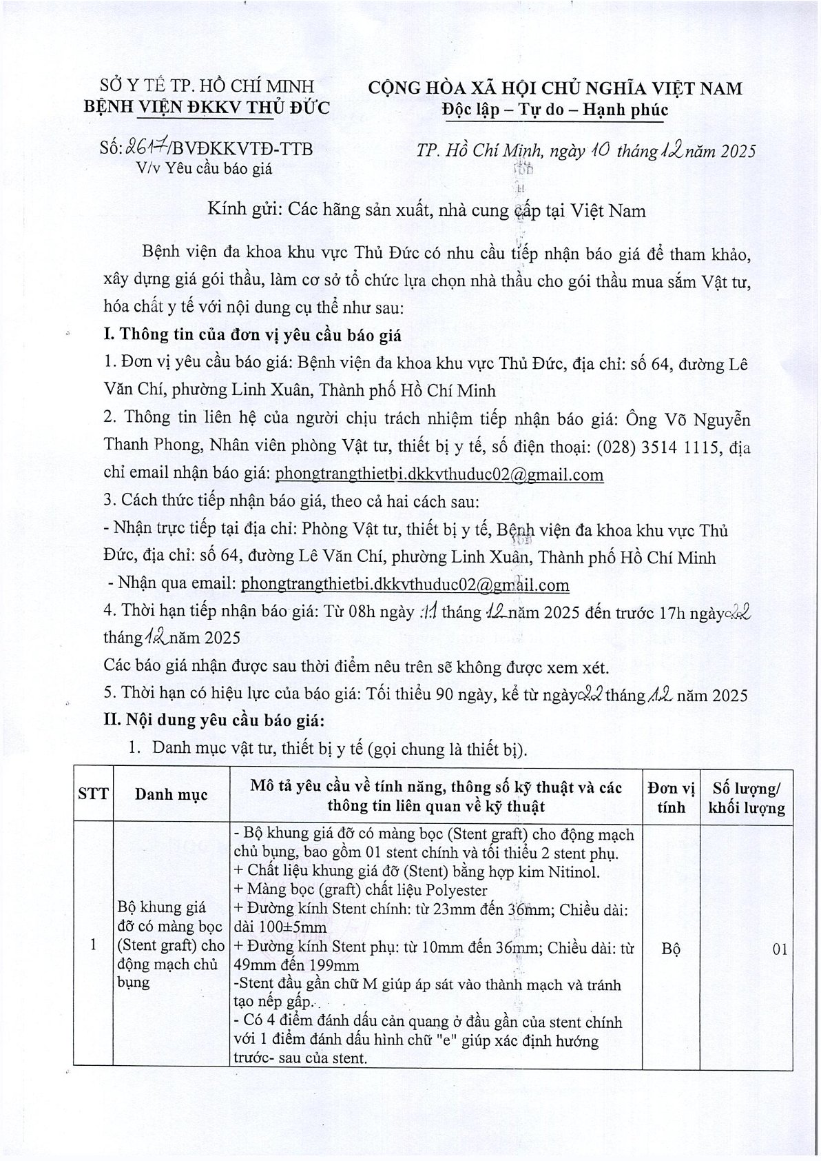 Thư Mời Báo Giá "V/v Yêu cầu báo giá" - Kính gửi: Các hãng sản xuất, nhà cung cấp tại Việt Nam Bởi supadmin -10-12-2025 ... +++ Link các danh sách đính kèm: - Thư mời yêu cầu báo giá và phụ lục - Mẫu phụ lục báo giá