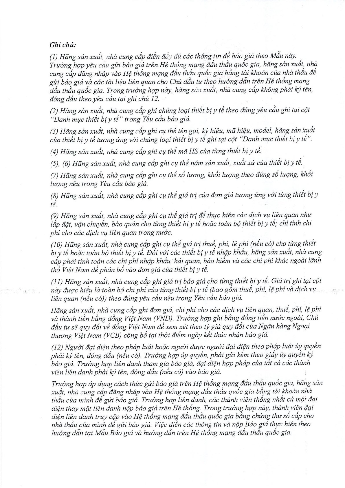 Thư Mời Báo Giá " V/v Yêu cầu báo giá " - Kính gửi: Các hãng sản xuất, nhà cung cấp tại Việt Nam Bởi supadmin -12-12-2025 ... +++ Link các danh sách đính kèm: - Thư mời yêu cầu báo giá và phụ lục - Mẫu phụ lục báo giá