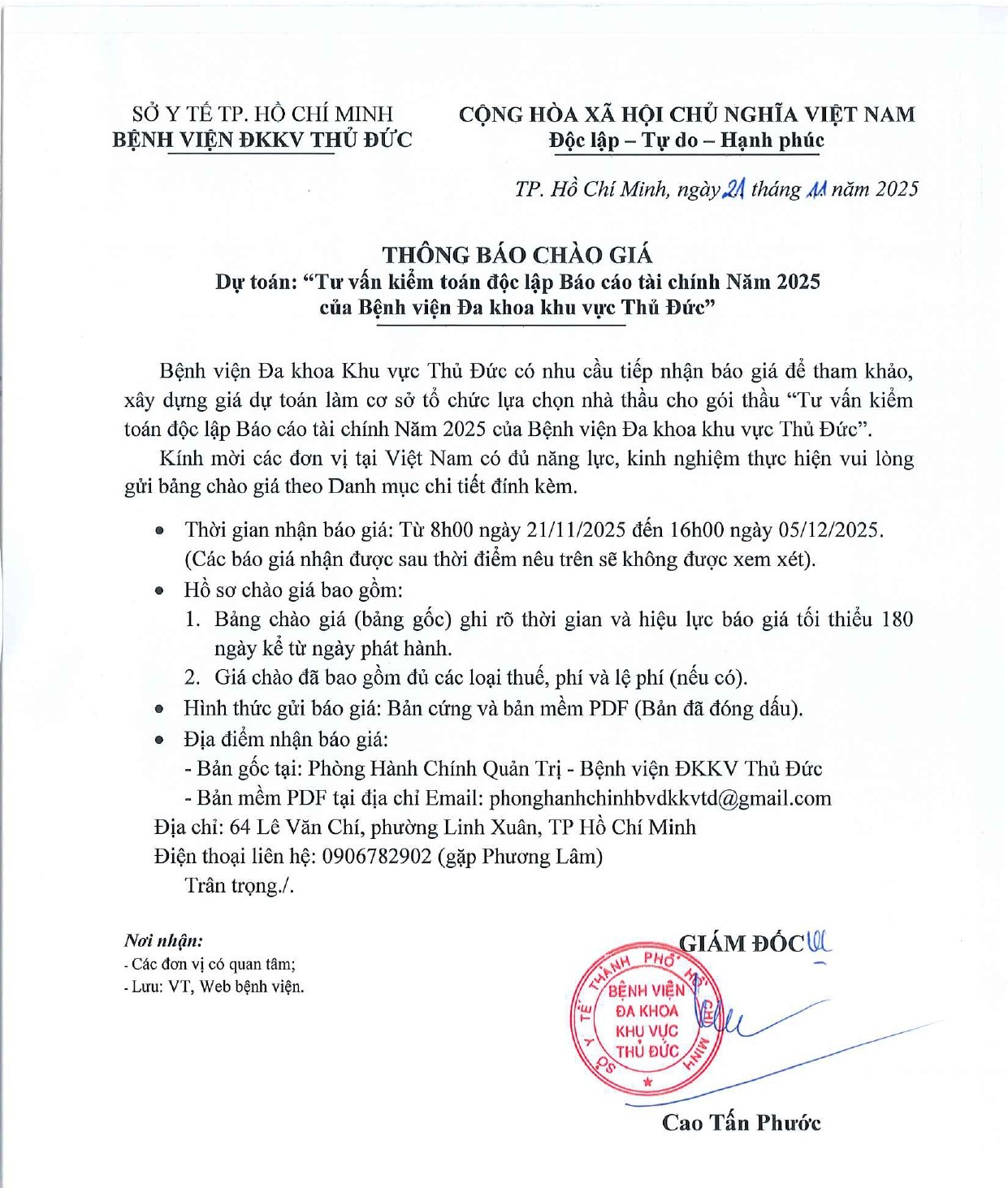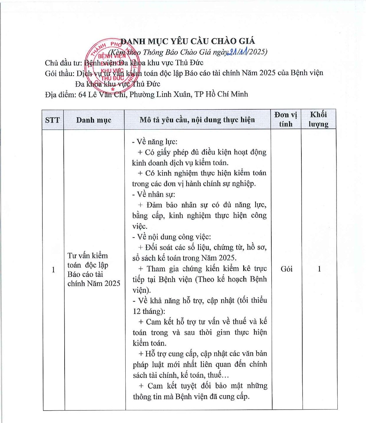 Thư Mời Chào Giá "V/v Yêu cầu báo giá"