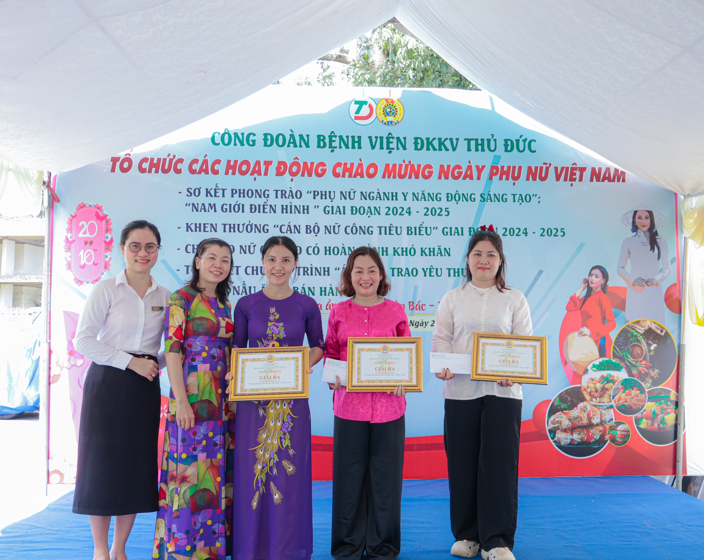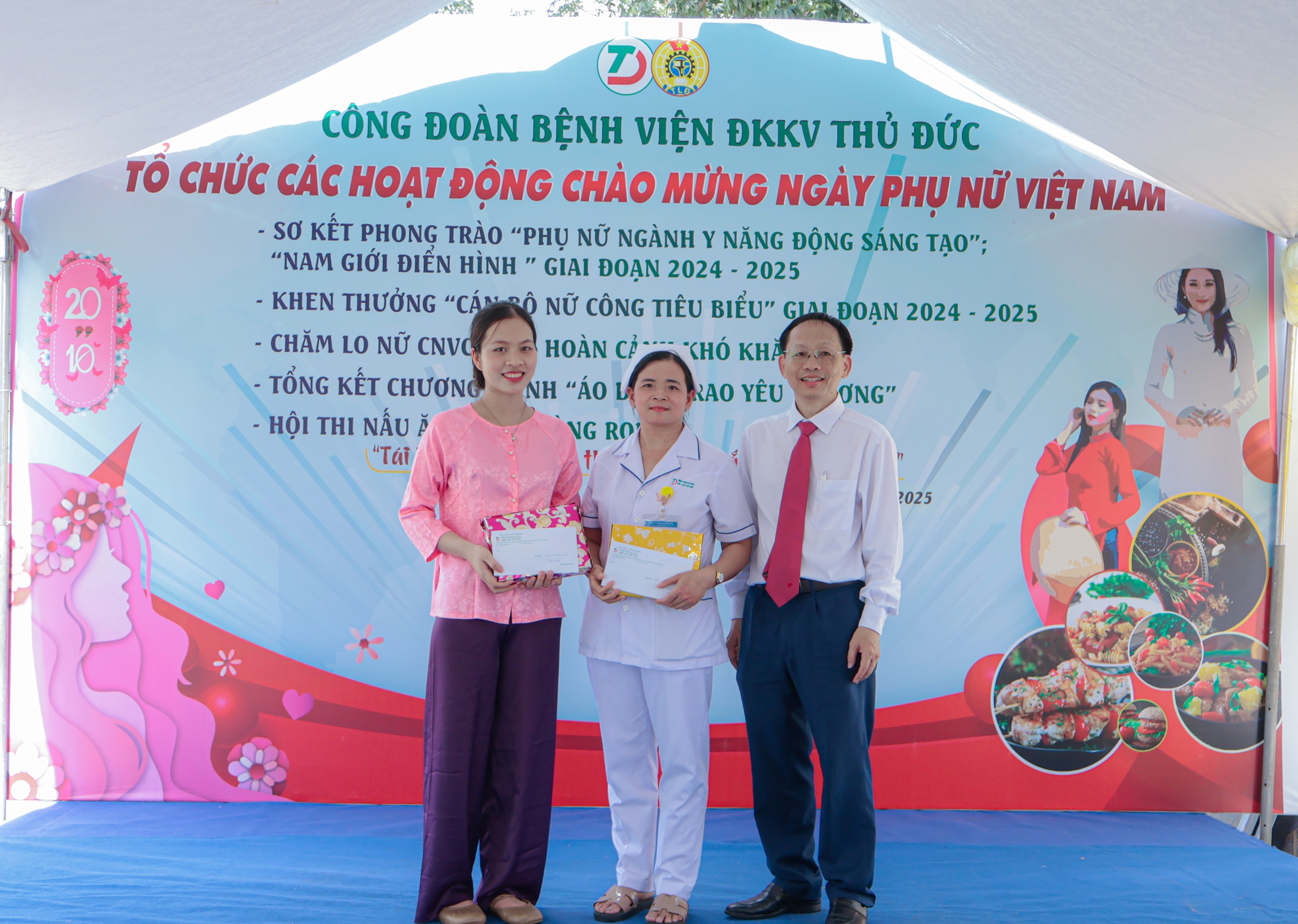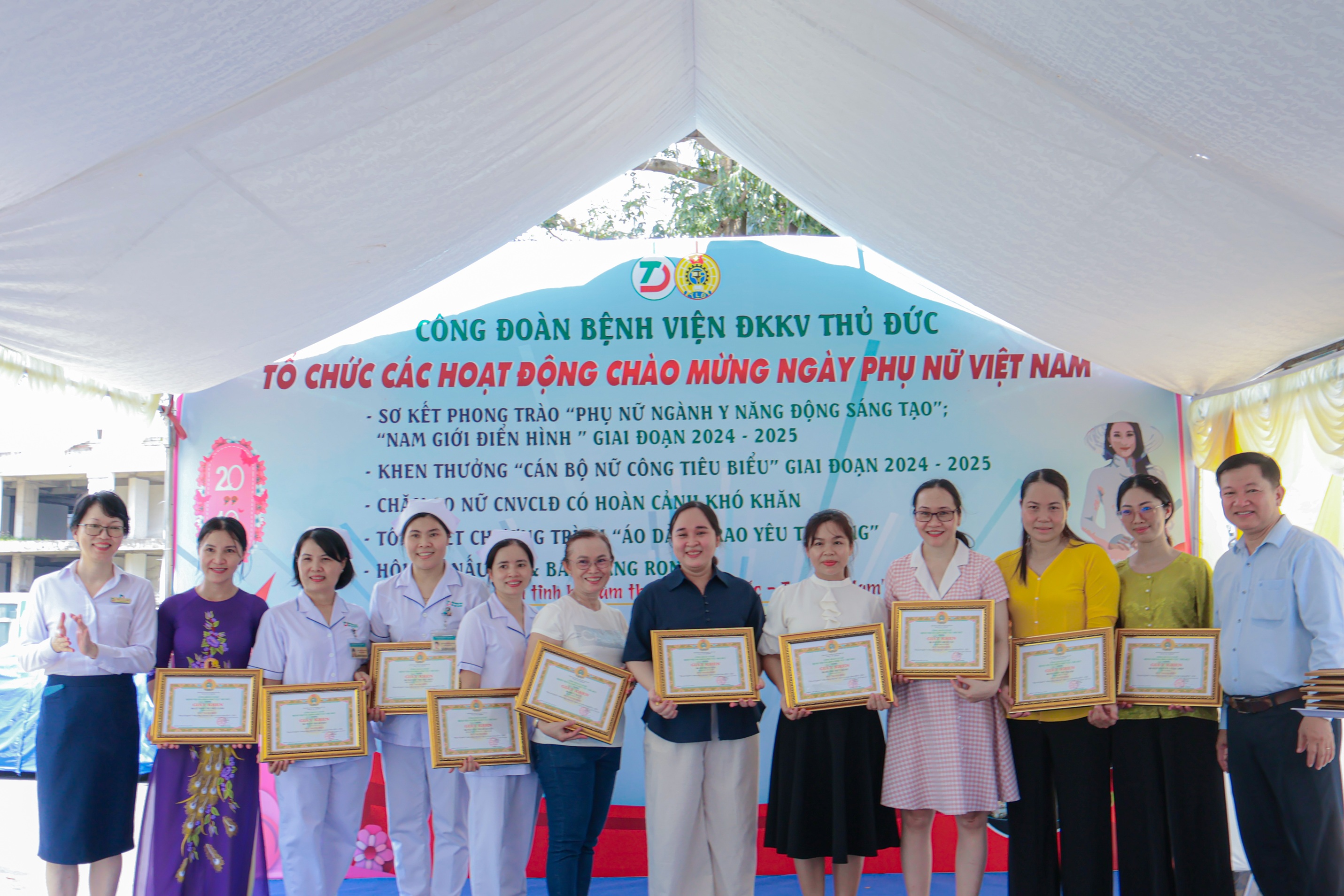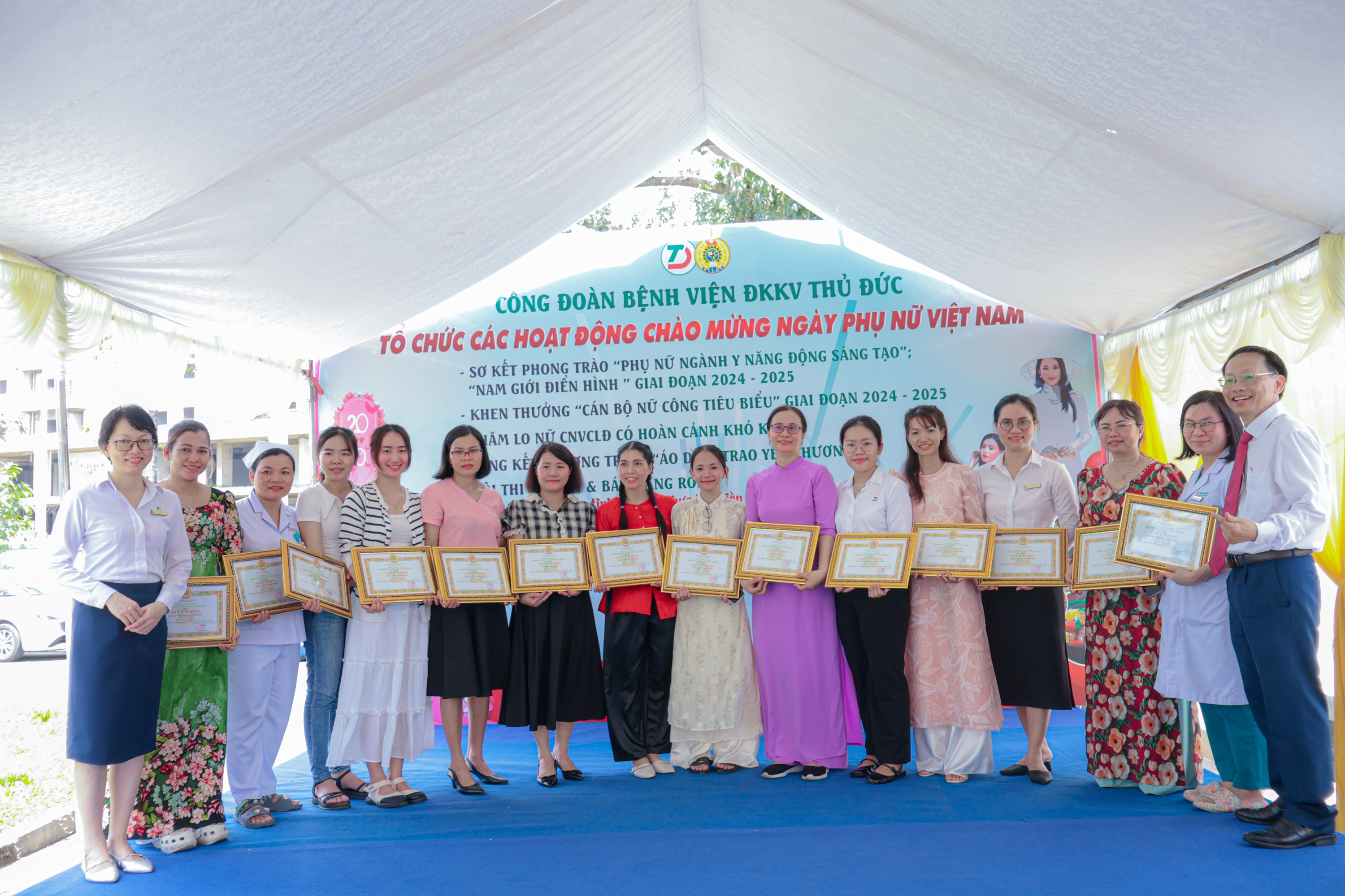 Có thể nói dù ở bất cứ đâu, dù ở cương vị nào, phụ nữ cũng thể hiện thế mạnh của mình để khẳng định vị thế, vai trò và khả năng tiềm ẩn của mình. Trong một năm qua dù trải qua nhiều thử thách trong công việc song toàn thể nhân viên bệnh viện, đặc biệt là nữ CNVC NLĐ Bệnh viện ĐKKV Thủ Đức vẫn quyết tâm thi đua vượt mọi khó khăn hoàn thành xuất sắc nhiệm vụ được giao. Vì vậy tại chương trình đã diễn ra phần khen thưởng phong trào "Phụ nữ ngành y năng động sáng tạo" và "Nam giới điển hình" giai đoạn 2024-2025. Đây là những giải thưởng vinh danh những cá nhân đã có nhiều đóng góp nổi bật trong công tác chuyên môn và hoạt động công đoàn, đồng thời khích lệ tinh thần làm việc sáng tạo, nhiệt huyết của toàn thể CNVCLĐ trong bệnh viện.
