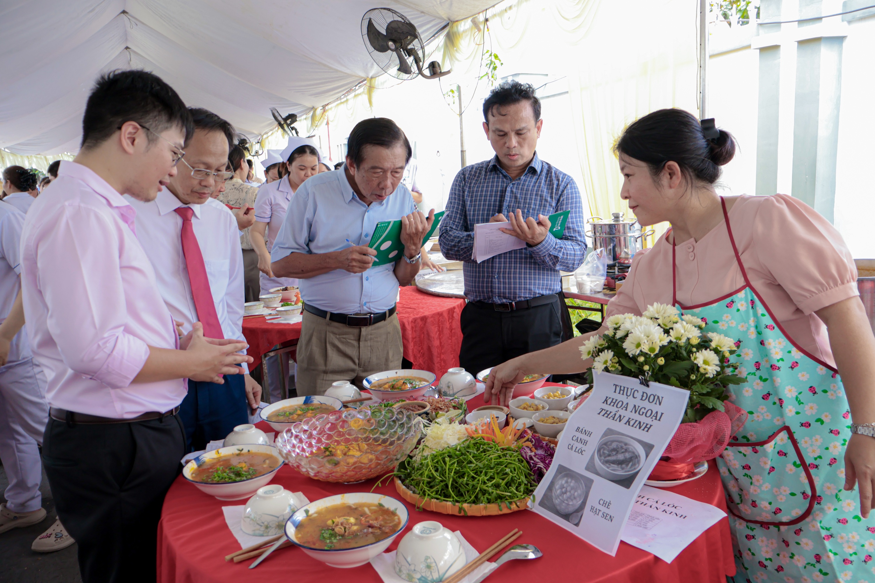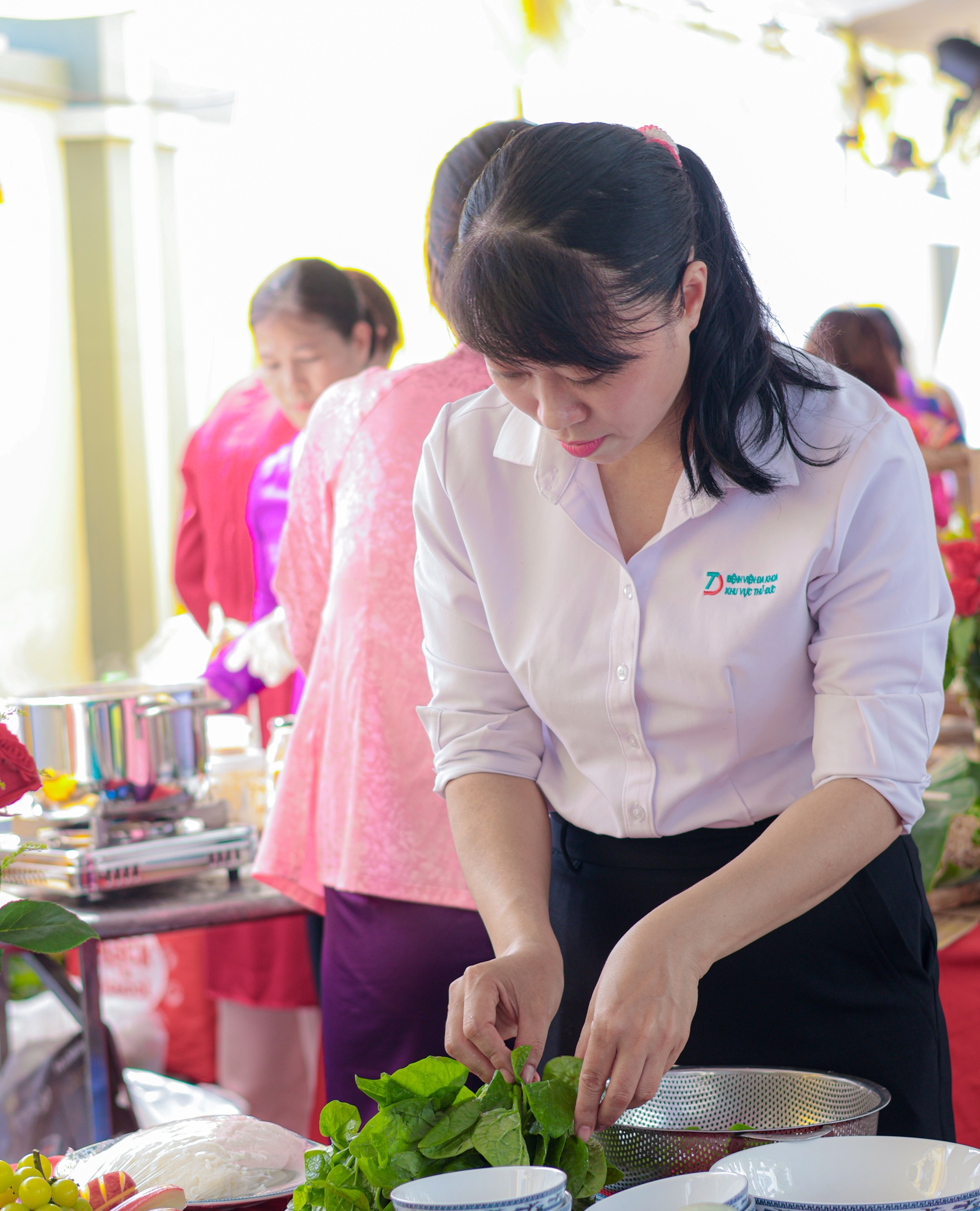 Một trong những hoạt động được mong chờ nhất trong chương trình là hội thi nấu ăn với chủ đề "Tái hiện tinh hoa ẩm thực 3 miền Bắc – Trung - Nam". Cuộc thi đã thu hút 35 sự tham gia sôi nổi của các khoa, phòng với sự chuẩn bị công phu, kỹ lưỡng từ các đội thi. Các món ăn được trình bày đẹp mắt, không chỉ thể hiện sự khéo léo, sáng tạo mà còn là thông điệp về giá trị gắn kết gia đình và tinh thần đoàn kết giữa các thành viên. Ban giám khảo, gồm các bác sĩ và lãnh đạo bệnh viện, đã làm việc cẩn thận để đưa ra những đánh giá công tâm và xứng đáng.