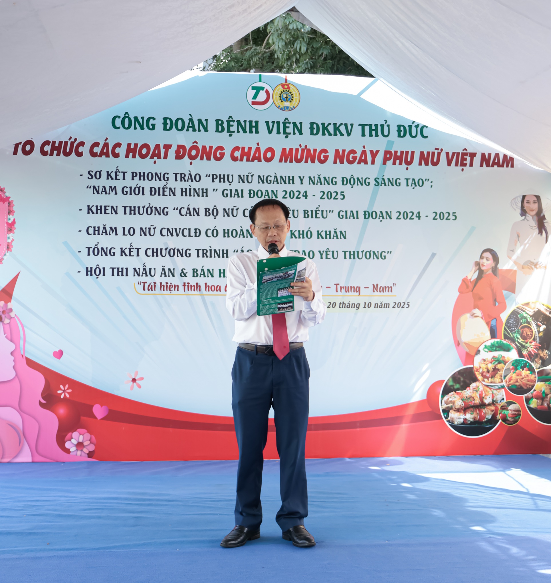 Vào ngày 20/10/2025 vừa qua, Bệnh viện Đa khoa khu vực Thủ Đức đã tổ chức thành công chương trình kỷ niệm chào mừng Ngày Phụ nữ Việt Nam. Đây là sự kiện đầy ý nghĩa, nhằm tôn vinh và tri ân những đóng góp to lớn của nữ công nhân viên chức lao động (CNVCLĐ) trong hoạt động và sự phát triển của bệnh viện.