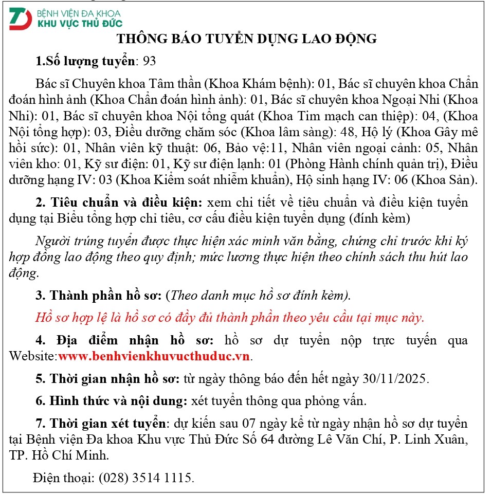 - Link đăng ký tuyển dụng (nếu đã đăng ký tài khoản): http://www.benhvienkhuvucthuduc.vn/tuyen-dung/