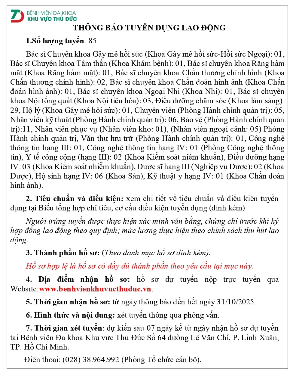 - Link đăng ký tuyển dụng (nếu đã đăng ký tài khoản): http://www.benhvienkhuvucthuduc.vn/tuyen-dung/